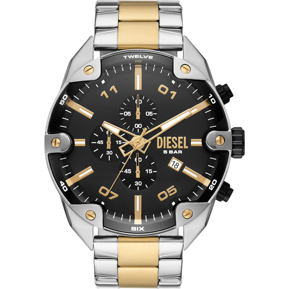 O Relógio Diesel DZ4627 faz parte da coleção Spiked, conhecida por seu design robusto e moderno. Fabricado com materiais de alta qualidade, possui caixa de aço inoxidável prata e pulseira de aço de 2 tons (prata e dourado), garantindo durabilidade e estilo. Este modelo se destaca por suas funcionalidades: cronógrafo, calendário, e resistência à água de 5ATM (50 metros). Com uma caixa de 49mm, é um acessório imponente adequado para homens de estilo. 2 anos de garantia internacional