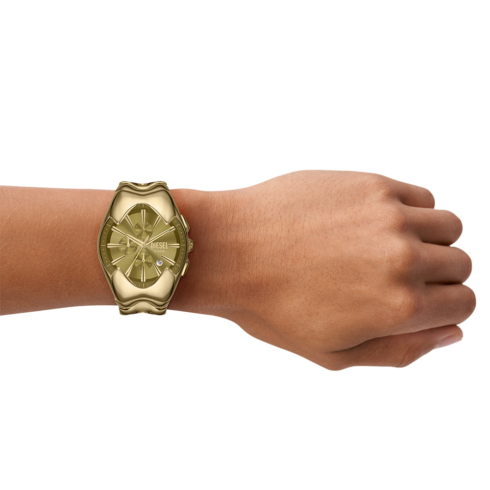 Apresentando a mais nova criação da DIESEL, o Mercurial é um cronógrafo combina perfeitamente a pulseira e a caixa, com apenas o mostrador como peça central. Acabamentos polidos e mostradores em tons vibrantes conferem um toque elegante e moderno a um design de mostrador funcional que combina com você.