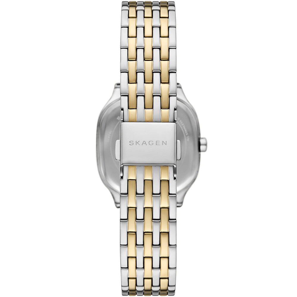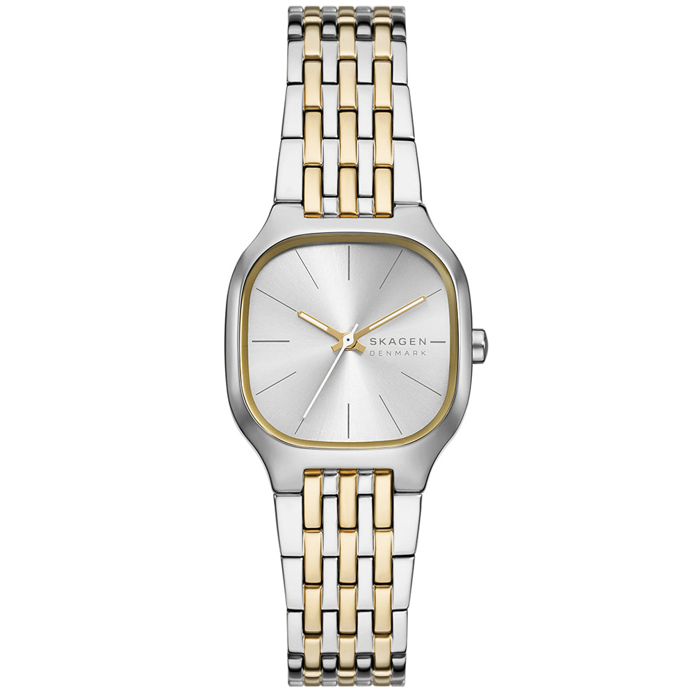 O relógio Skagen SKW3160 integra a linha Mellem. Com uma estética clean, sua caixa de 28mm é confeccionada em aço inoxidável prateado. A pulseira de aço inoxidável em 2 tons (dourado e prateado), adiciona sofisticação ao design. O mostrador, protegido por cristal mineral, apresenta índices lineares em tom prata. Equipado com mecanismo de quartzo, este modelo oferece resistência à água de até 3 ATM e 2 anos de garantia internacional. Skagen: A essência do design dinamarquês em cada relógio. Minimalismo elegante, materiais de alta qualidade e uma conexão com a natureza escandinava. Descubra a beleza da simplicidade e adicione um toque de sofisticação contemporânea ao seu estilo
